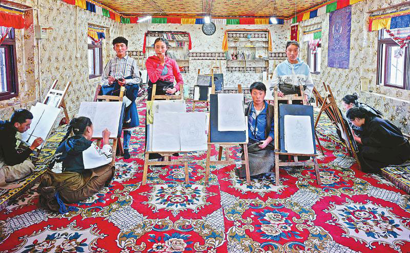 དངོས་མིན་རིག་གནས་ནི་འཛམ་ཐང་གི་ཁྱད་ཆོས་ལྡན་པའི་རིག་གནས་ཐོན་ཁུངས་ཤིག་ཡིན་པ་དང། དབུལ་ཕོངས་རྫོང་ཞིག་ཡིན་པའི་ཆ་ནས། འཛམ་ཐང་རྫོང་གིས་ཉེ་བའི་ལོ་འགའི་ནང་དུ་རིག་གནས་དབུལ་སྐྱོར་སྐུལ་འདེད་ཤུགས་ཆེན་བཏང་བ་དང་། "དངོས་མིན་རིག་གནས+དབུལ་སྐྱོར"གྱི་ཐབས་བཀོད་ལ་གཞིགས་ནས། "སྲིད་གཞུང་གིས་དབུལ་སྐྱོར་དང་། རྒྱུད་འཛིན་པ་རང་གིས་གསར་གཏོད"ཀྱི་རྣམ་པ་སྤྱད་ཡོད། རྒྱུད་འཛིན་པས་ཧུར་བརྩོན་ཆེན་པོས་རིག་གནས་རྒྱུད་སྦྱོང་ཁང་བཙུགས་པར་སྐུལ་འདེད་བཏང་བ་སྟེ། དངོས་མིན་ཤུལ་བཞག་རིག་གནས་རྒྱུད་སྦྱོང་ཁང་འཛུགས་སྐྲུན་ཐད་ལ་ལོ་རེར་མ་དངུལ་སྒོར་ཁྲི་100བཏང་ཡོད། མིག་སྔར། རྫོང་འདིར་རྒྱུད་སྦྱོང་ཁང་26བཙུགས་ཡོད་ཅིང་། བོད་སྤོས་དང་བོད་ཇ། བོད་སྨན། ཐང་ག རྡོ་བརྐོས། རྫ་བཟོ་སོགས་དངོས་མིན་རིག་གནས་ཀྱི་ལས་གཞི་འདུས་ཡོད། ད་ཆར། རྫོང་འདིར་དངོས་མིན་རིག་གནས་ཐོན་སྐྱེད་རང་བཞིན་གྱི་སྲུང་སྐྱོབ་ལས་དོན་སྒྲུབ་མཁན་1400ཡོད་པ་དང་། དམངས་ཁྲོད་དུ་བརྗེད་ལ་ཉེ་བའི་ལག་རྩལ་གང་མང་ཡང་བསྐྱར་གསོ་བྱས་ནས་གསོན་ཤུགས་རྒྱས་པར་གྱུར། བསྡོམས་རྩིས་གཞི་གྲངས་ལྟར་ན། ན་ནིང་འཛམ་ཐང་རྫོང་གི་ཁྲིད་སྦྱོང་ཁང་26ལས་15ལ་ཁེ་སྤོགས་བྱུང་ཡོད་པ་སྟེ། ཁྱོན་བསྡོམས་སྒོར་ཁྲི་500ཉེ་བ་ཙམ་གྱི་དཔལ་འབྱོར་གྱི་ཕན་འབྲས་ཐོབ་ཡོད།