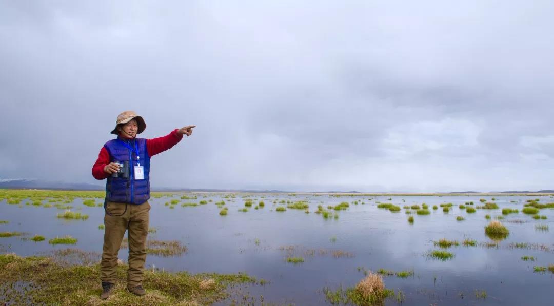 ད་ལོའི་ཟླ་3པའི་ཚེས་12ཉིན། ཁྲུང་ཁྲུང་སྐེ་ནག་ཁྱུ་འདི་ཕྱིར་འཕུར་ནས་ཐོན་ཞིང་། སྐྱེས་འཚར་ལོངས་བའི་ཁྲུང་ཁྲུང་ཞིག་ཀྱང་ཁྲིད་ཡོང་འདུག་ཟེར། རིག་ཁོས་འདི་ཡང་ཁོས་ད་ལོ་ཐོག་མར་མཐོང་བའི་་ཁྲུང་ཁྲུང་སྐེ་ནག་མཚོ་ཁྱ་ཁྲེབ་ཏུ་ཕྱིར་འཕུར་ཡོང་བ་དེ་ཡིན་ཟེར། རྒྱུས་མངའ་ཆེ་བའི་གྲོགས་པོ་རྙིང་བ་འདི་དག་མཐོང་ཚེ། ཁོས་སྔར་ནང་བཞིན་ཁ་པར་གྱིས་ཁོ་ཚོ་ཕྱིར་འཕུར་ཡོང་བ་དེ་བརྙན་ལ་བླངས། དེ་དང་ཆབས་གཅིག་ཏུ། ཨ་ཁུ་ཁྱུང་ལྷ། ཁྱེད་ཚོ་བདེ་མོ། ས་ཐག་རིང་བོ་དེ་འདྲ་ཞིག་ནས་འཕུར་ཡོང་བ་དཀའ་ལས་མྱངས་སོང་ངམ་ཞེས་བརྩེ་སེམས་ཟབ་མོས་ཁོ་ཚོར་མཚམས་འདྲི་བྱས།
