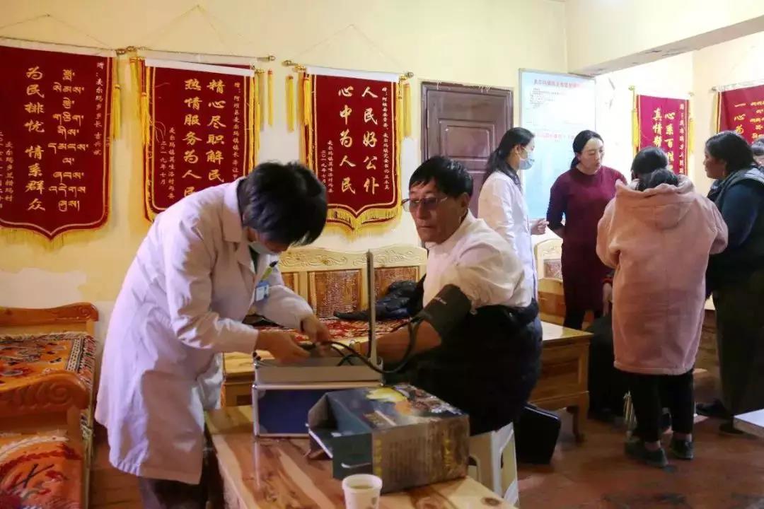 བྱེད་སྒོའི་ཡུལ་དངོས་ནས་ནུབ་རྒྱུད་དམག་འཐབ་ཁུལ་གྱི་སྤྱི་ཁྱབ་སྨན་ཁང་གི་གཙོ་བཅོས་སྨན་པ་ཚོས་ཡུལ་དངོས་སུ་ཕེབས་པའི་མང་ཚོགས་ཚང་མར་བདེ་ཐང་མཛུབ་ཁྲིད་དང་གཟུགས་པོར་བརྟག་དཔྱད་བྱས་པར་མ་ཟད། མིག་དང་ཁྲག་ཤེད་སོགས་ལའང་བལྟས། ད་དུང་ངང་རྒྱུད་རིང་པོའི་སྒོ་ནས་བདེ་ཐང་གི་གོམས་གཤིས་དང་འཚོ་བ་སྐྱེལ་སྟངས་འགྲེལ་བཤད་བྱས་པ་དང་། མང་ཚོགས་ཀྱིས་བཏོན་པའི་བདེ་ཐང་གི་གནད་དོན་ལ་ཆེད་ལས་ཀྱི་མཛུབ་ཁྲིད་བྱས་པ་དང་སྦྲགས། མི་སེར་ལ་སྨན་རིན་མི་དགོས་པར་སྤྲད་ཅིང་སྨན་འཐུང་སྟངས་དང་འབྲེལ་ཡོད་ཀྱི་དོ་སྣང་བྱེད་དགོས་པའི་དོན་ཚན་ཁག་གསལ་བཤད་གནང་།