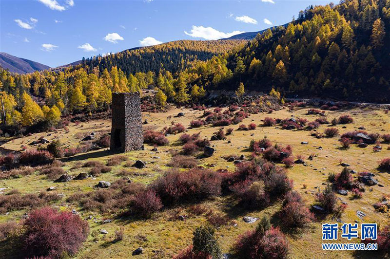 སྟོན་མཇུག་གི་ནམ་མཁའ་གཡའ་དག་ལ། རི་ཚོགས་དང་སྟོན་གྱི་ལོ་མ་བཅས་ཀྱིས་ས་མཐོའི་དྭངས་ཤིང་གཙང་བའི་ཉི་འོད་འོག་གི་ཁྲོན་ནུབ་ཕྱག་ཕྲེང་རྫོང་མཛེས་སྡུག་ལྡན་པ་ཞིག་ཏུ་འགྱུར།