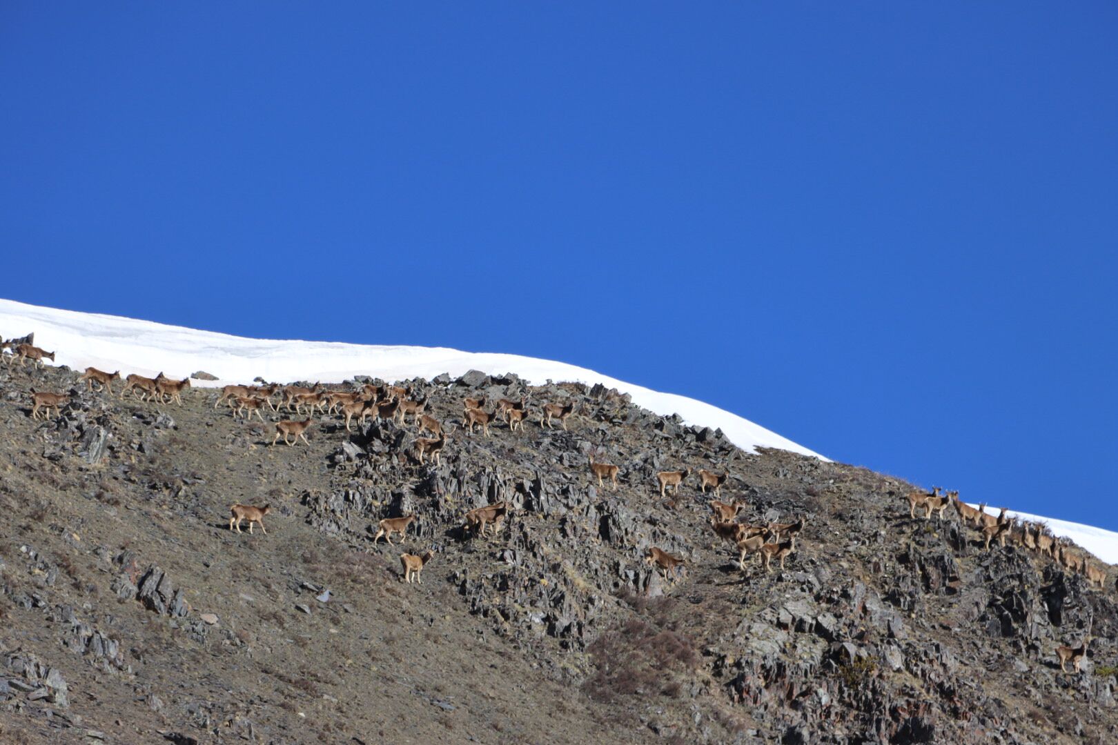 ཟླ་འདིའི་ཚེས་༡༠ཉིན། བྲག་འགོ་རྫོང་གི་པར་ལེན་མཐུན་ཚོགས་དང་རྩོམ་པ་པོ་མཐུན་ཚོགས་ཀྱི་ཚོགས་མི་འགའ་བྲག་འགོའི་ཡུལ་གྱི་ཆེས་མཐོ་བའི་རི་བོ་སྟེ་མཚོ་ངོས་ལས་མཐོ་ཚད་༤༧༢༠ཡས་མས་ཀྱི་གདོང་རིའི་རི་རྩེ་རུ་འཛེགས་ལ། རི་རྩེ་དེ་ནས་རང་རྒྱལ་གྱི་རིམ་པ་དང་པོའི་སྲུང་སྐྱོབ་སྲོག་ཆགས་ཤ་བ་བརྒྱ་ཕྲག་གནས་པ་མཐོང་ལ། ལམ་སང་ཁོ་ཚོས་དེ་དག་པར་མིག་ཏུ་བསྐྱོན་ལ། ལོ་མང་པོའི་རིང་ཤ་བ་ལ་གནོད་འཚེ་བྱེད་མཁན་མེད་སྟབས་ཁོ་ཚོ་དལ་དལ་ལྷོད་ལྷོད་ངང་གཡས་རིའི་བྲག་སྟེང་ནས་མདུན་ཕྱོགས་སུ་འགྲོ་བཞིན་འདུག་ལ། ད་དུང་གདོང་རིའི་མདུན་གྱི་ལུ་གུ་མཚོ་སོགས་སུ་རི་སྐྱེས་སྲོག་ཆགས་སྣ་ཚོགས་ཀྱི་རྗེས་ཤུལ་མང་པོ་ཕབ་འདུག །འདིའི་ཀྱང་བྲག་འགོའི་ས་གནས་ཀྱིས་རི་སྐྱེས་སྲོག་ཆགས་ལ་སྲུང་སྐྱོབ་ནན་མོ་བྱེད་བཞིན་པ་མཚོན་ཡོད།