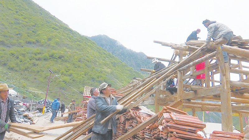 རྒན་མོ་ཞིག་གིས་གསར་འགོད་པར“ང་ཚོའི་གྲོང་ཚོའི་གྲོང་མི་ཚོ་ད་ལོ་རི་འགོར་དབྱར་རྩྭ་དགུན་འབུ་འཐུ་བ་དང་ཨག་ལིག་འཚོལ་བར་འགྲོ་གི་མེད། ཚང་མས་གྲོང་ཚོའི་ནང་ཕན་ཚུན་རོགས་རམ་བྱས་ནས་སྡོད་ཁང་གསར་པ་བསྐྲུན་བཞིན་ཡོད”ཅེས་བཤད་པ་རེད། གྲོང་ཚོའི་ནང་ཟླ་4པ་ནས་ཟླ་6པའི་ཟླ་སྟོད་བར་ཉིན་བཞིན་སྡོད་ཁང་གསར་པ་སྐྲུན་བཞིན་ཡོད།