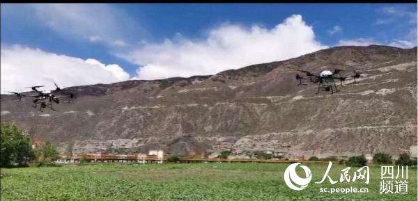 ཉི་འོད་འོག་དང་བསིལ་རླུང་ཁྲོད། གྲོ་ཞིང་ནི་སྔོ་ལྗང་གི་རྦ་རླབས་འཕྱུར་བཞིན་པ་དང་འདྲ། རྩི་ཤིང་སྲུང་སྐྱོང་གི་མི་མེད་གནམ་གྲུ་སྐབས་རེར་མགྱོགས་པོར་མདུན་དུ་འཕུར་ལ། སྐབས་རེར་དལ་བུར་དཀྱོག་ནས་མུའུ་200ལྷག་ཙམ་གྱི་གྲོ་ཞིང་ལ་སྨན་གཏོར་ནས་“ཕན་ཆེ་དང་། གནད་སྨིན། མགྱོགས་པོ་”བཅས་ཀྱི་ཕྱི་རོལ་དུ་སྨན་གཏོར་བའི་ལས་ཀ་ཁྱོན་ཡོངས་ལ་ཁྱབ་པ་བྱས་ཡོད།