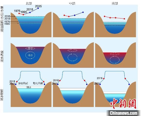 གཅིག་ནི་མཚོ་བོད་མཐོ་སྒང་གི་མཚེའུ་ཡི་རྒྱ་ཁྱོན་དང་། ཆུ་གནས། ཆུ་འབོར་བཅས་ཀྱི་འགྱུར་ལྡོག་དེ་1970ལོ་ནས་1990ལོའི་དུས་དཀྱིལ་བར་ཅུང་ཆག་ཡོད་པ་དང་། དེ་རྗེས་རྒྱུན་མཐུད་ངང་མགྱོགས་པོར་འཕར་བའི་རྣམ་པ་མངོན་ཡོད།