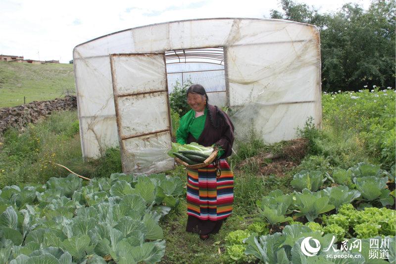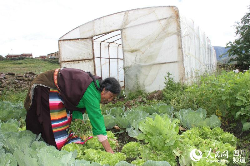 སྔོ་ཚལ་དྲོད་ཁང་ནང་། ཧོང་ཀྭ་དང་། ཆིན་ཚལ། ཙོང་སོགས་སྔོ་ཐིང་ཐིང་དུ་སྐྱེས་ཀྱི་ཡོད་ལ། འགག་རྩ་ནི་དགུན་ཁར་ཡང་སྔོ་ཚལ་སོས་པ་ཟ་རྒྱུ་ཡོད་པ་དེ་རེད། དྲོད་ཁང་ཕྱི་རོལ་གྱི་པད་ཚལ་དཀར་པོ་དང་། སྔོ་ཚལ། ཞོག་ཁོག་སོགས་ཀྱང་སྐྱེ་སྟོབས་ཀྱི་དཔལ་འབར་བར་སྐྱེས་ཀྱི་ཡོད། “སྐབས་མང་པོ་ཞིག་ལ་ཟོས་ཚར་གྱི་མི་འདུག་པས། ཁྱིམ་མཚེས་ཚོར་མང་པོ་སྤྲད་པ་ཡིན”ཞེས་དགའ་སྤྲོའི་ངང་བཤད། གྲོང་ཚོའི་ནང་ཐོན་པའི་ལ་ཕུག་དཀར་པོ་ཚང་མ་ཤང་ཀང་དང་ཨའོ་མོན་དུ་བཙོངས་པ་དང་ཚང་མ་འཕྲུལ་ཆས་ཅན་གྱི་འདེབས་བསྡུ་བྱས་པ་རེད། དྲོད་ཁང་ཆེ་མོའི་ནང་གི་ཀྲོ་མ་ཀྲུ་དང་འབྲི་ཏ་ས་འཛིན་སོགས་སྔོ་ཚལ་དང་ཤིང་ཏོག་རིགས་བཅུ་ལྷག་ནི་ཁྲེང་ཏུའུ་སོགས་ས་ཁུལ་གྱི་བྲིན་ཁ་རྒྱུག་པའི་ཚོང་ཟོག་ཏུ་གྱུར་ཡོད། “གླིང་ཁུལ་+ཀུང་སི་+རྟེན་གཞི་+ཞིང་དུད”ཀྱི་ཐོན་ལས་རྣམ་པས། ཆོས་སྐྱིད་ཚང་ལ་ལས་གཉེར་བའི་ཡོང་འབབ་ཡོད་པ་བྱས་པ་མ་ཟད། ད་དུང་འདེབས་འཛུགས་ལག་རྩལ་ཡང་བསླབས་པ་བྱས་ཡོད་པས། ཁོ་མོས་ད་ནས་བཟུང་སྔོ་ཚལ་ཟ་བར་སེམས་ཁྲལ་བྱེད་མི་དགོས་པ་རེད།