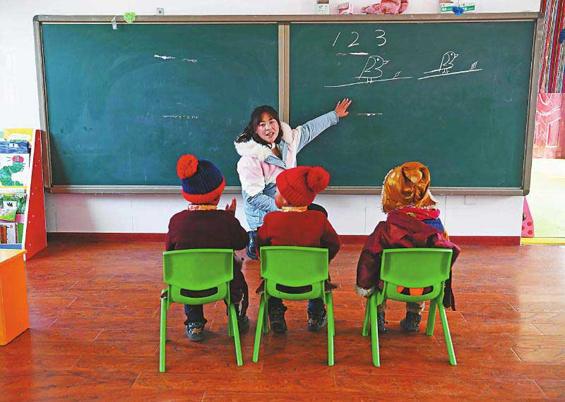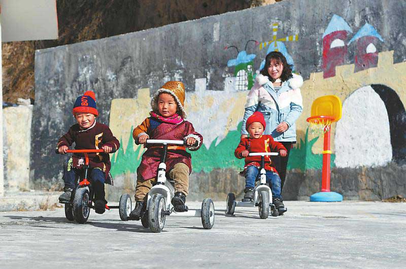 “གཟུགས་ཆེ་བ་དེའི་མིང་ལ་དཔལ་བཟང་བཀྲ་ཤིས་ཟེར་བ་དང་། ཤ་རིད་པ་དེ་ནི་ཁོང་གི་ནུ་བོ་རོགས་པོ་རྒྱ་མཚོ་ཡིན། རྫིག་ཉམས་དོད་པོ་དེ་ནི་ཉི་མ་སྐྱབས་རེད། ང་ཚོའི་བུ་བཅོལ་ཁང་དུ་ད་ཆ་སློབ་མ་འདི་3ལས་མེད”ཅེས་བཤད། ཟླ་12ཚེས་24ཉིན་ཟུང་ཆུ་རྫོང་ཆིང་ཡུན་གྲོང་རྡལ་ཟླ་རྔ་རོ་གྲོང་ཚོའི་བུ་བཅོལ་ཁང་དུ། བྱིས་པའི་དགེ་རྒན་ཀྲང་ཧྲུའུ་མའེ་ཡིས་གསར་འགོད་པར་སློབ་མ་གསུམ་ངོ་སྤྲོད་བྱེད་སྐབས་མིག་ནང་དུ་ང་རྒྱལ་གྱིས་ཁེངས་འདུག སློབ་ཁང་དུ་ལོག་པ་ན། ལོ་5ལ་སླེབས་པའི་དཔལ་བཟང་བཀྲ་ཤིས་ཀྱིས་སྨྱུ་གུ་དོན་ནས་ཨང་ཀི“1”“2”“3”བྲིས་པ་དང་། ལོ་3ལ་སླེབས་པའི་རོགས་པོ་རྒྱ་མཚོ་དང་ཉི་མ་སྐྱབས་ཀྱིས་སྤྱི་སྐད་ཐོག་ཐོགས་པ་མེད་པར་དྲི་བར་ལན་བཏབ…… ས་གནས་དེ་གའི་མིས་བལྟས་ན་འདི་དག་ནི་ཧ་ཅང་རྩ་ཆེ་བའི་ཡར་ཐོན་རེད།