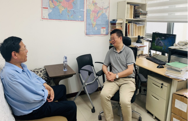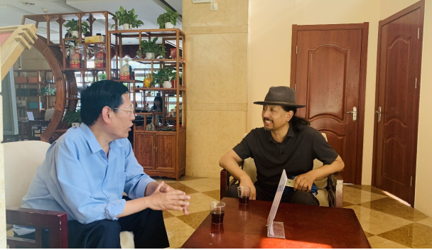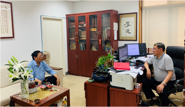 ཀྲུང་གོའི་བོད་རིག་པའི་པར་སྐྲུན་ཁང་གི་ཞུས་ཆེན་ཚངས་པོ་དང་བགྲོ་གླེང་གནང་བཞིན་པ།