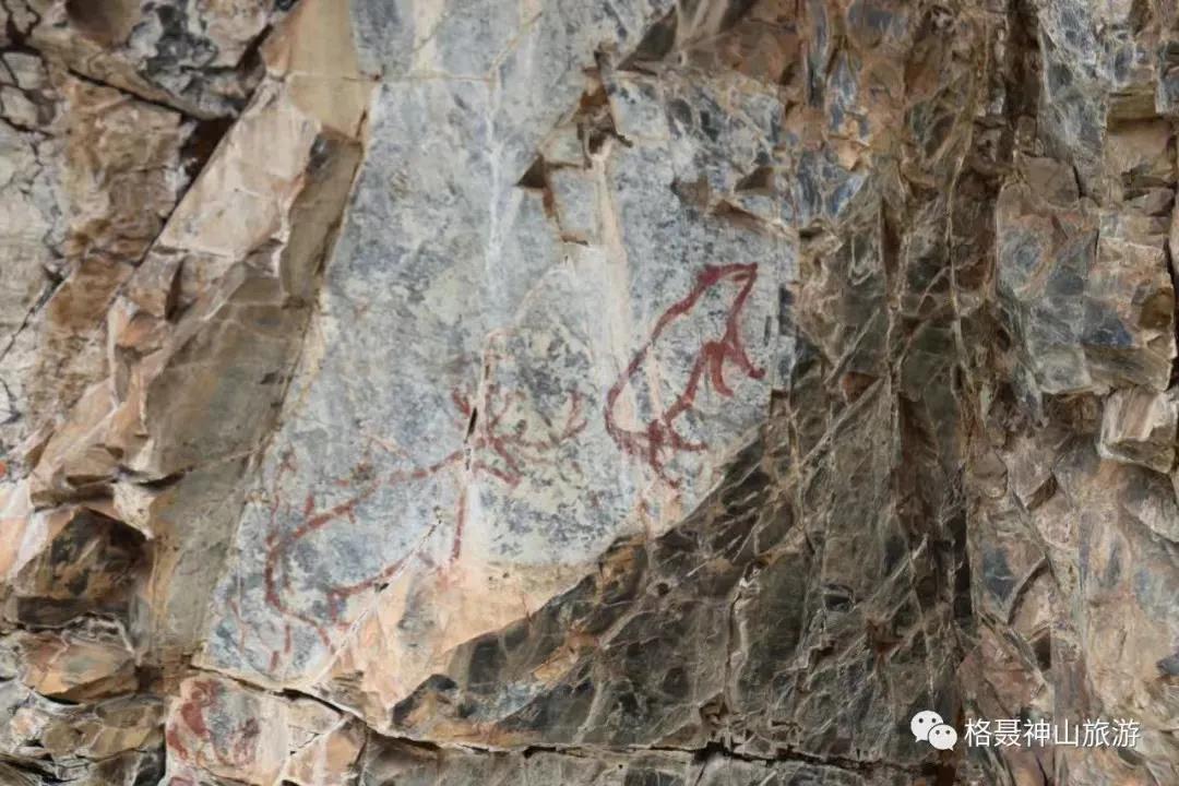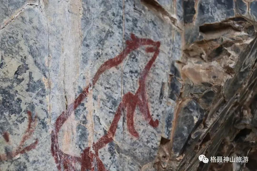 དེ་ཡང་མིའི་གཟུགས་རིས་ནི་རྡོ་ཆས་གསར་མའི་ཁྲོད་རྒྱུན་དུ་མཐོང་རྒྱུ་ཡོད་ལ། མང་ཤོས་ནི་ལག་ཏུ་མདའ་གཞུ་འཛིན་མཁན་དང་རྐྱ་པའི་གཟུགས་བརྙན་ཡིན་པ་དང་། མགོ་ཟླུམ་པོ་དང་གཟུགས་བཞིའི་འགུལ་སྤྱོད་ཀྱི་རྣམ་པ་སྟབས་བདེ་རུ་བྲིས་ཡོད། མི་དང་སྲོག་ཆགས་ཀྱི་བསྡུར་ཚད་ལ་མཚོན་ན། ཕལ་ཆེར་རྒྱུན་ལྡན་གྱི་དངོས་ཡོད་གནས་ཚུལ་བཞིན་བསྡུར་ཚད་1:1ལྟར་མཚོན་ཡོད། གནས་འདིར་མི་སྣ་ཟུར་ངོས་སུ་བྲིས་ཡོད་པ་དང་། རོ་སྟོད་རྒུར་ཞིང་ལག་ཟུང་གིས་ཅ་དངོས་བཟུང་ནས་མཆོད་འབུལ་བྱེད་པའམ། ཡང་ན་ཅ་དངོས་བཟུང་ནས་གཡུག་བཞིན་པའི་རྣམ་པ་མངོན་ཤིང་། འགུལ་རྣམ་ཤིན་ཏུ་མངོན་གསལ་དོད་པོ་ལྡན། གཞན་ཡང་གནས་འདིའི་མི་སྣ་དང་སྲོག་ཆགས་ཀྱི་འབྲེལ་བ་ལ་བལྟས་ན། སྲོག་ཆགས་ནི་ཤིན་ཏུ་ཆེ་ཞིང་། མི་སྣ་ནི་ཤྭ་བ་དང་“མོ་(獏)”ཡི་གཟུགས་དབྱིབས་ཀྱི་བཅུ་ཆའི་གཅིག་ལས་ད་དུང་ཆུང་བར་མངོན། འདི་ནི་གནའ་དུས་སུ་སྲོག་ཆགས་ལ་དད་གུས་བྱེད་པའི་བྱེ་བྲག་གི་མཚོན་ཚུལ་ཞིག་ཡིན།
