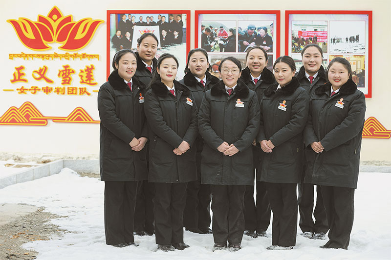 ཁོང་ཚོས་ད་དུང“བུད་མེད་སློབ་གྲྭའི་བཅའ་ཁྲིམས་སློབ་ཁང”དང་། “ཁྲིམས་དཔོན་བུད་མེད་ཀྱི་གསང་གཏམ” “གངས་ལྷ་མེ་ཏོག་གི་སློབ་ཁང”སོགས་གཉེར་ནས་གོ་བདེ་ཤེས་སླའི་པར་རིས་སོགས་ལ་བརྟེན་ནས་བཅའ་ཁྲིམས་དྲིལ་བསྒྲགས་བྱས་ཤིང་། ཁོང་ཚོའི་འབད་བརྩོན་འོག་ས་གནས་དེ་གའི་མང་ཚོགས་ཀྱི་བཅའ་ཁྲིམས་ཀྱི་འདུ་ཤེས་རིམ་བཞིན་ཟབ་ཏུ་ཕྱིན་པ་དང“དྲང་བདེན་གངས་ལྷ་མེ་ཏོག”བུད་མེད་འདྲི་གཅོད་ཚོགས་པར་ས་གནས་མང་ཚོགས་ཀྱི་ཡིད་ཆེས་ཐོབ་ཡོད།
